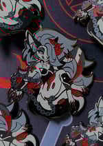 This is a 2 x 2 hard enamel pin with black nickel plating and red heart backings and contains glitter within the red coloring!